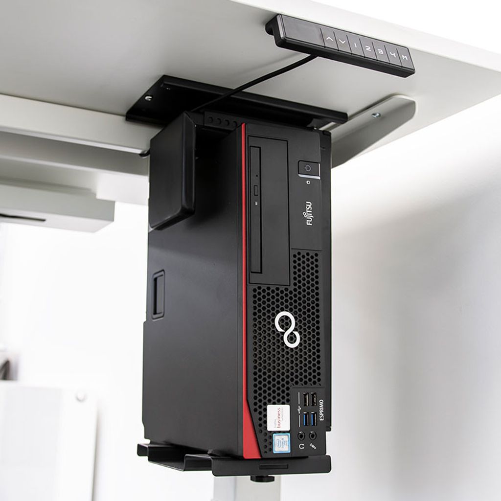 Stativet har en modern design med raka linjer vilket gör att skrivbordet passar in i alla typer av kontorslokaler. Bordsstativet är uppbyggt med 2-delade rektangulära ben som har pulverlackerats. Lyftkapaciteten ligger på 70 kg vilket gör att användaren utan problem får plats med 2-3 skärmar, dockstation, dokument mm. Stativet finns i färgerna vit, svart och silvergrå.