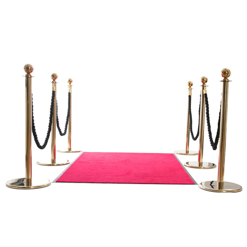 Ett komplett entrépaket som innehåller 6 st Casino stolpar i mässing med kula som topp-del, 4 st flätade rep med ändar i mässing samt 1 st entrématta i rött med gummerad undersida vilket gör den exemplarisk för användning både inomhus och utomhus. Entrémattan har måtten 180x120 cm.Specifikationer