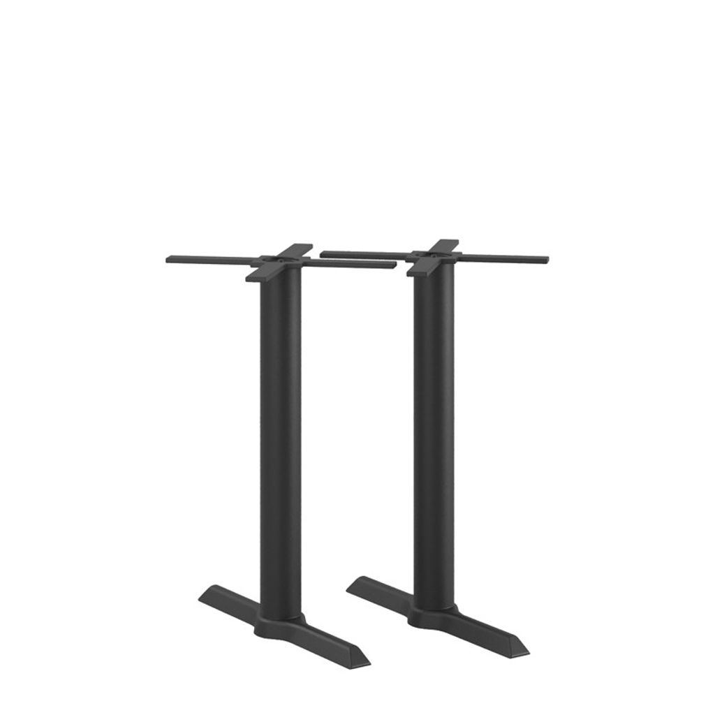 Bordsstativet består av två pelare med inbyggda fästen för bordsskiva samt stadiga rektangulära fötter. Både fot och pelare är matt pulverlackerade gjutjärnskonstruktioner. Stativet har justerbara tassar vilket gör det enkelt och smidigt att stabilisera bordsstativet vid behov. Stativet är tänkt för både inom- och utomhusbruk.