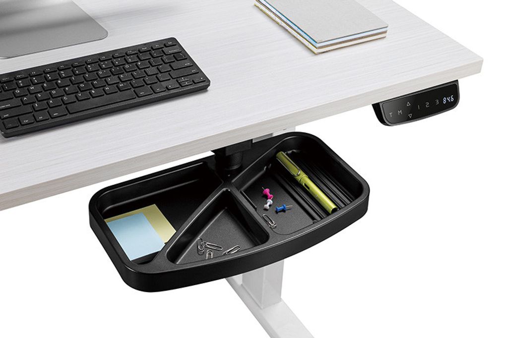 Skrivbordsförvaring Adapt är en svängbar förvaringslåda som ger praktisk extra förvaring till ditt höj- och sänkbara skrivbord. Monteras enkelt med tre skruvar och håller pennor, anteckningar och andra viktiga saker organiserade och lättåtkomliga.