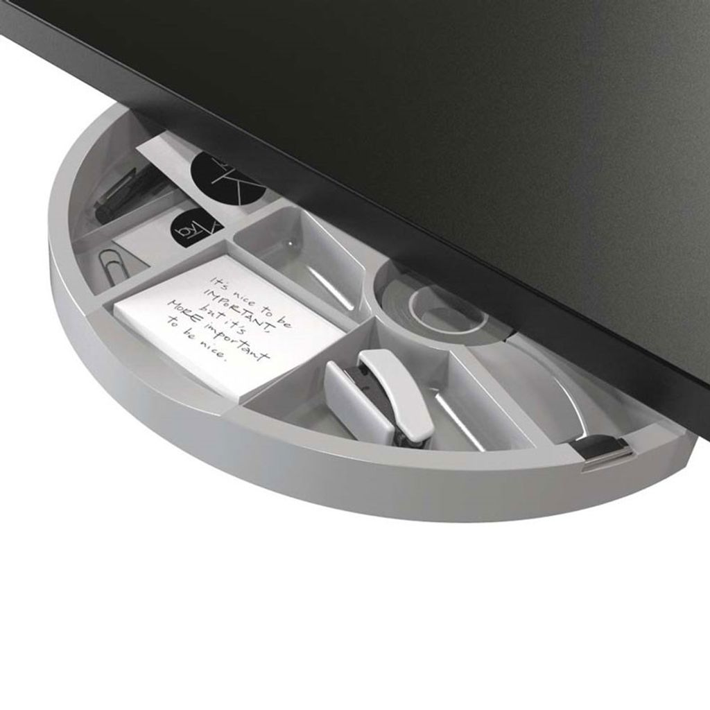 Håll ordning i skrivbordet med förvaringslådan EasyMed den praktiska förvaringslådan Easy har du koll på dom saker du ofta använder under arbetsdagen och vill ha nära till hands, men som ofta skapar oordning på skrivbordet om de ligger framme. Lådan monteras på skrivbordet under bordsskivan och låter dig snabbt och smidigt snurra fram det du behöver, detta tack vare den extremt smarta och platsbesparande roterbara designen.AnvändningsområdeFörvaringslådan Easy har flera småfack som skapar ordning och gör att du enkelt hittar det du söker efter. Passar perfekt för förvaring av pennor, sudd, gem och mycket annat. Ett av facken i skrivbordslådan är dessutom utrustad med en smart och praktisk metallkant som används för att riva av tejp.Specifikationer