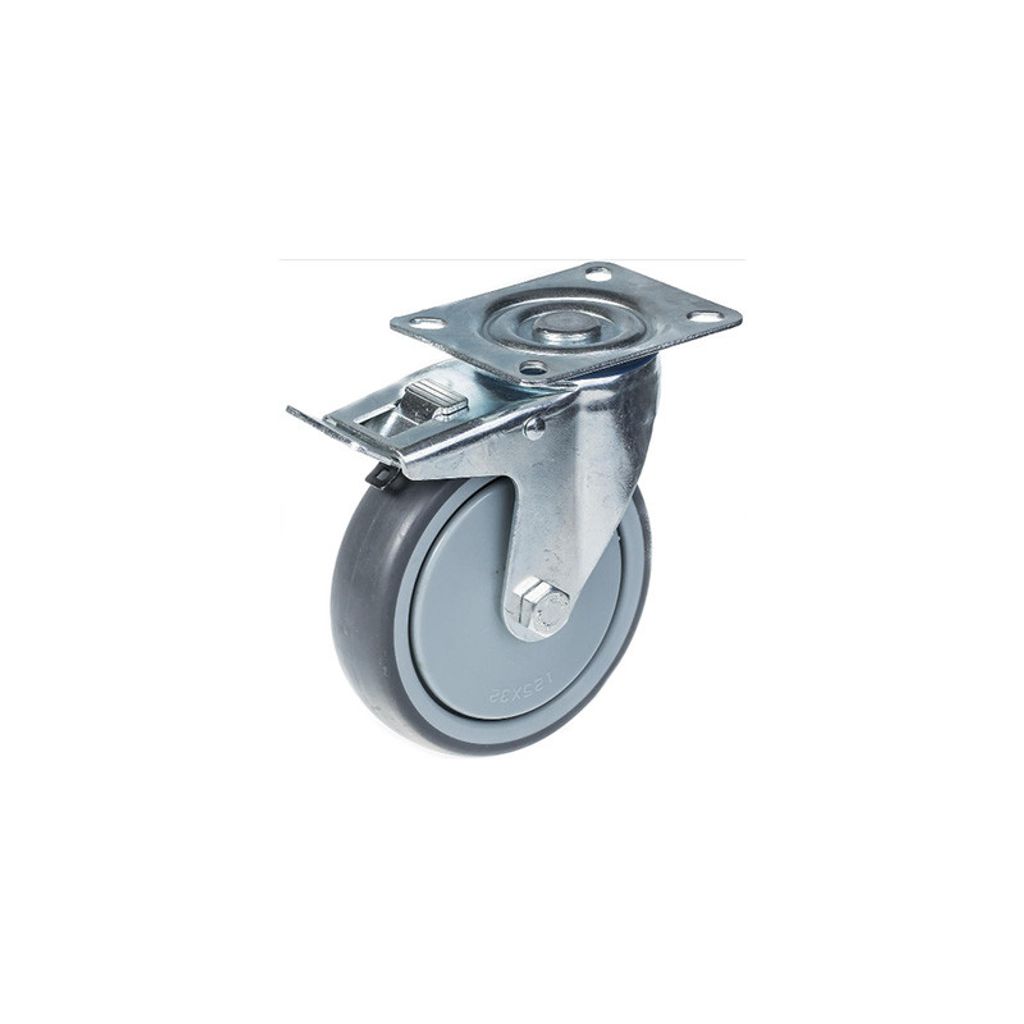 Hjul med kullager, 120mm, med broms och svänbart hjul, väger 2,3 kg