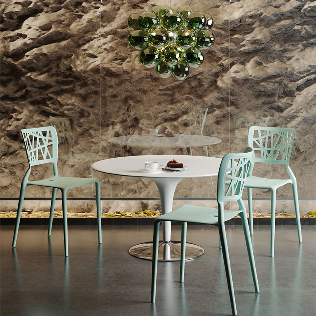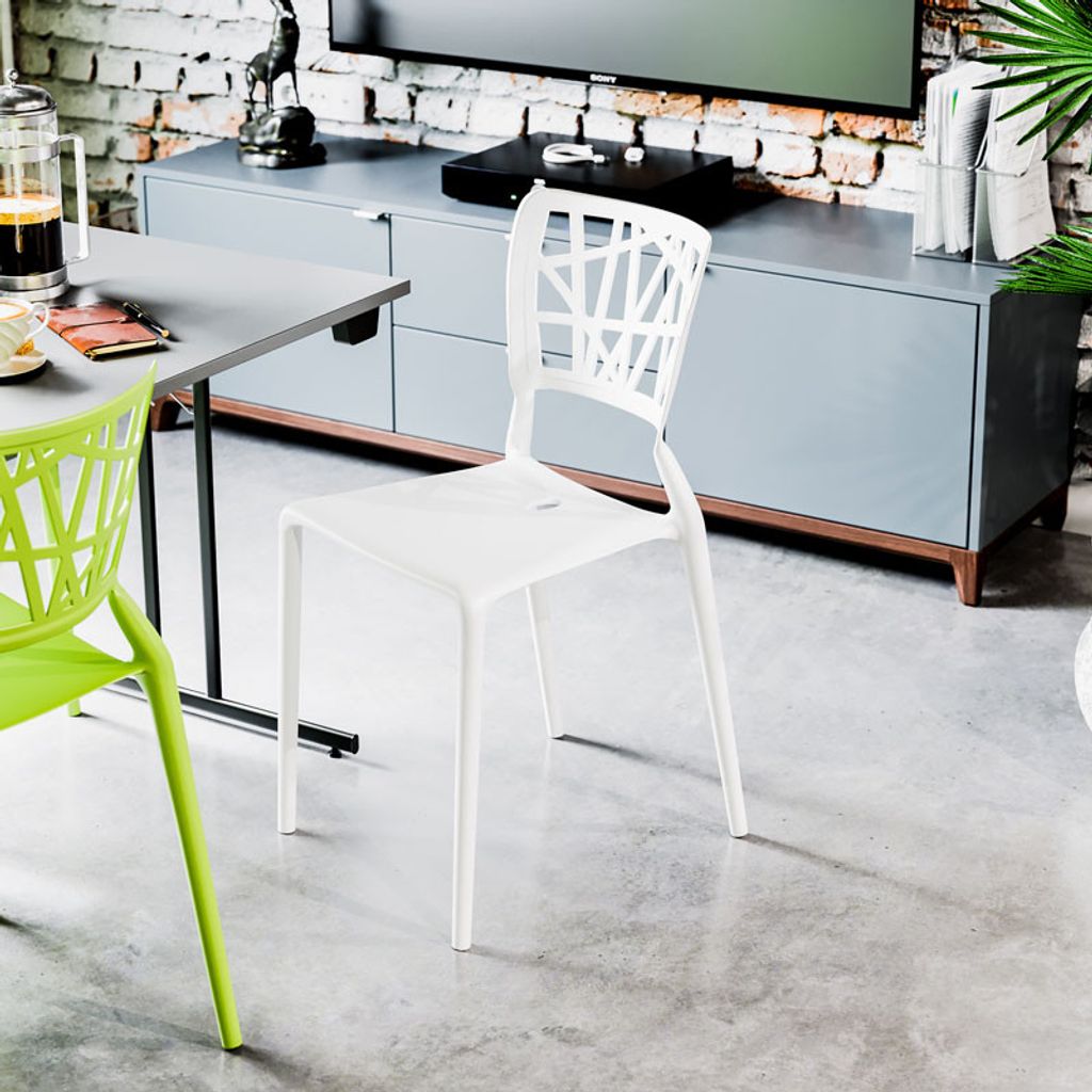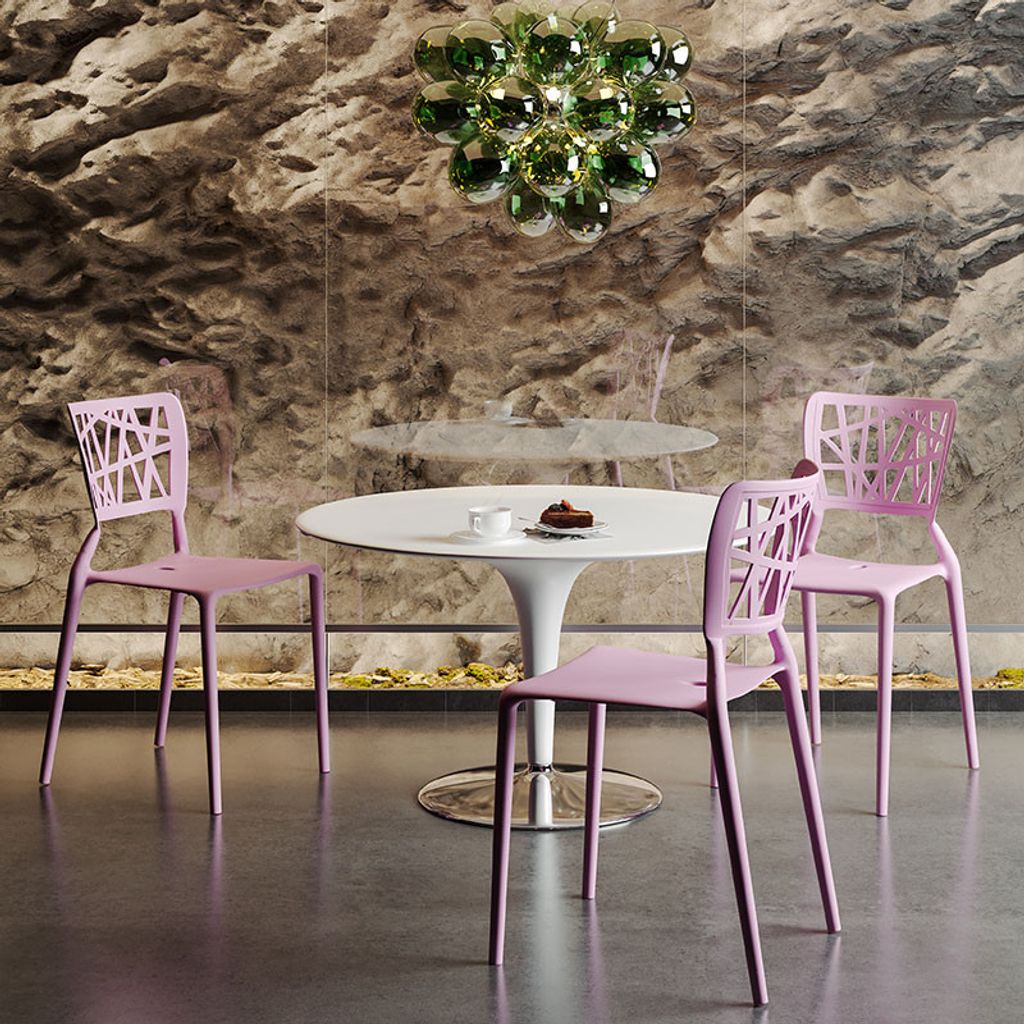 Inca stolen är en modern stapelbar plaststol med mönstrad rygg som i dagsläget lagerhålls i 6 olika färger.