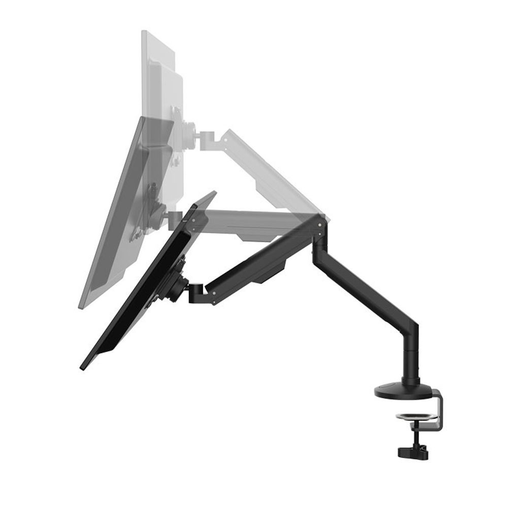 En svart monitorarm som kan bära 1 displayskärm. Monitorarmen passar till skärm som är 14-32 tum.