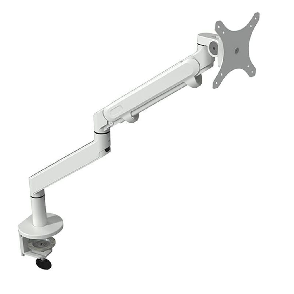 En vit monitorarm som kan bära 1 displayskärm. Monitorarmen passar till skärm som är 14-32 tum.