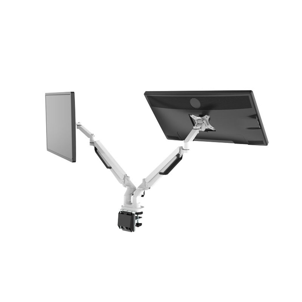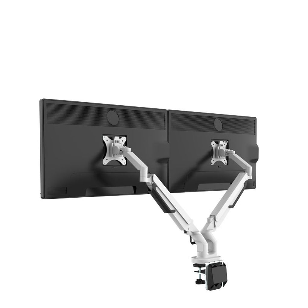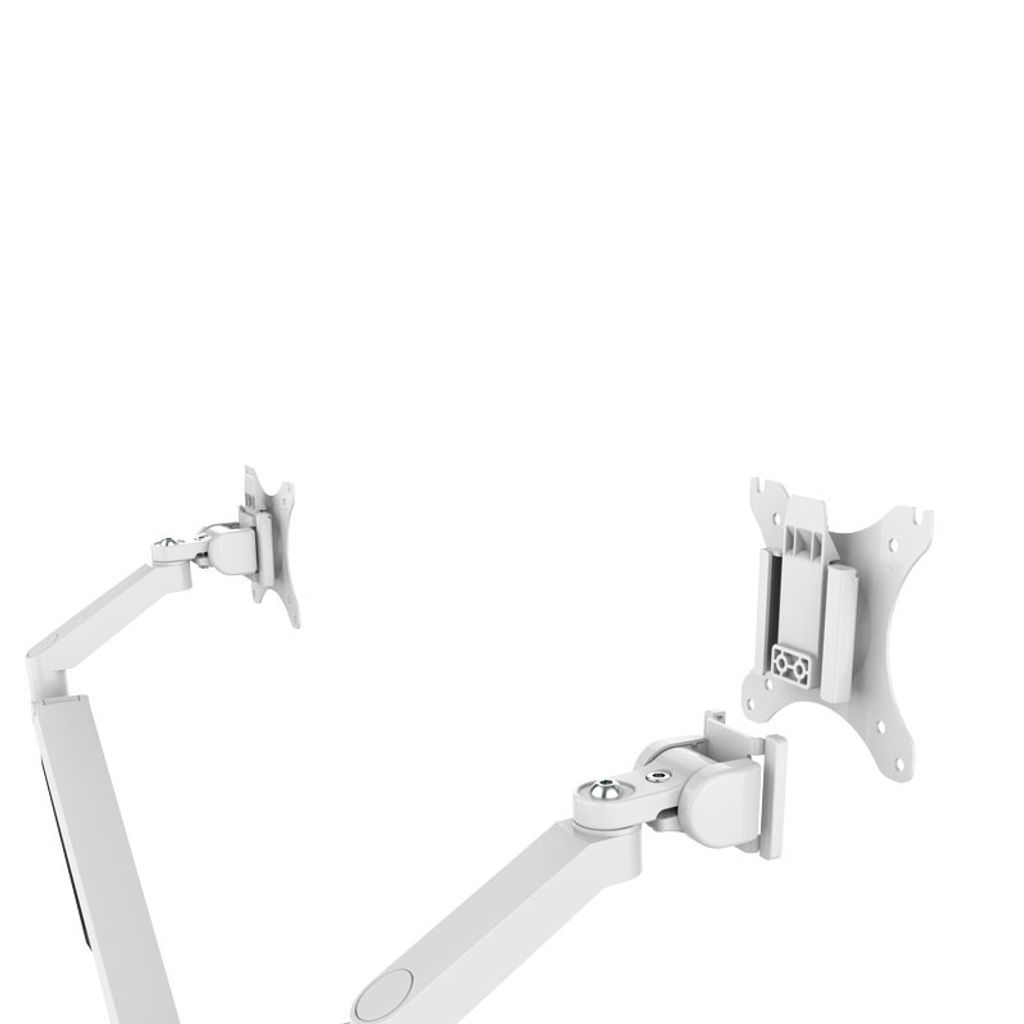 Den vita monitorarmen EASY har 2 sammankopplade armar för att kunna bära 2 displayskärmar med en rek. max. belastning på 2-9 kg. Displayhållarna fungerar bra till skärmar som är 17-32 tum, vilket oftast är dom vanligaste storlekarna i ett vanligt kontor. En någorlunda modern skärm som är 32? väger knappt 4kg