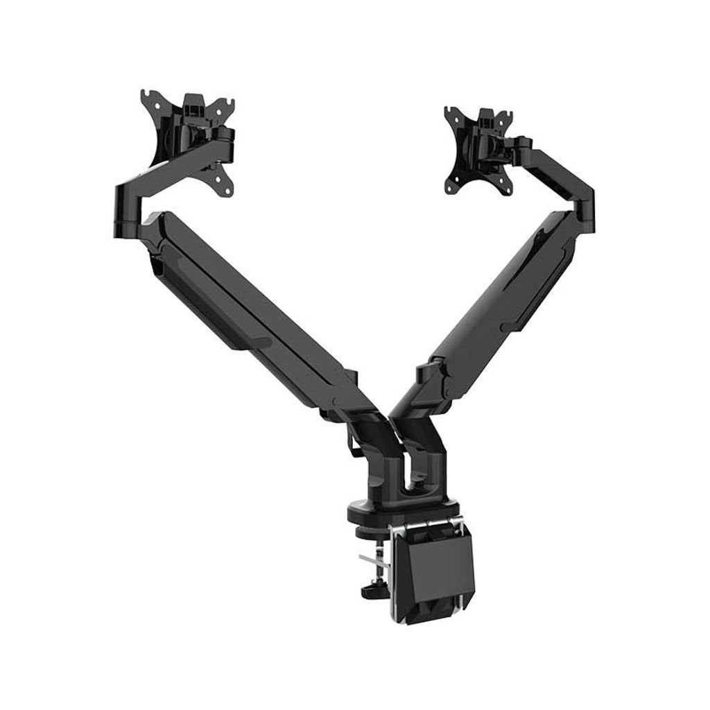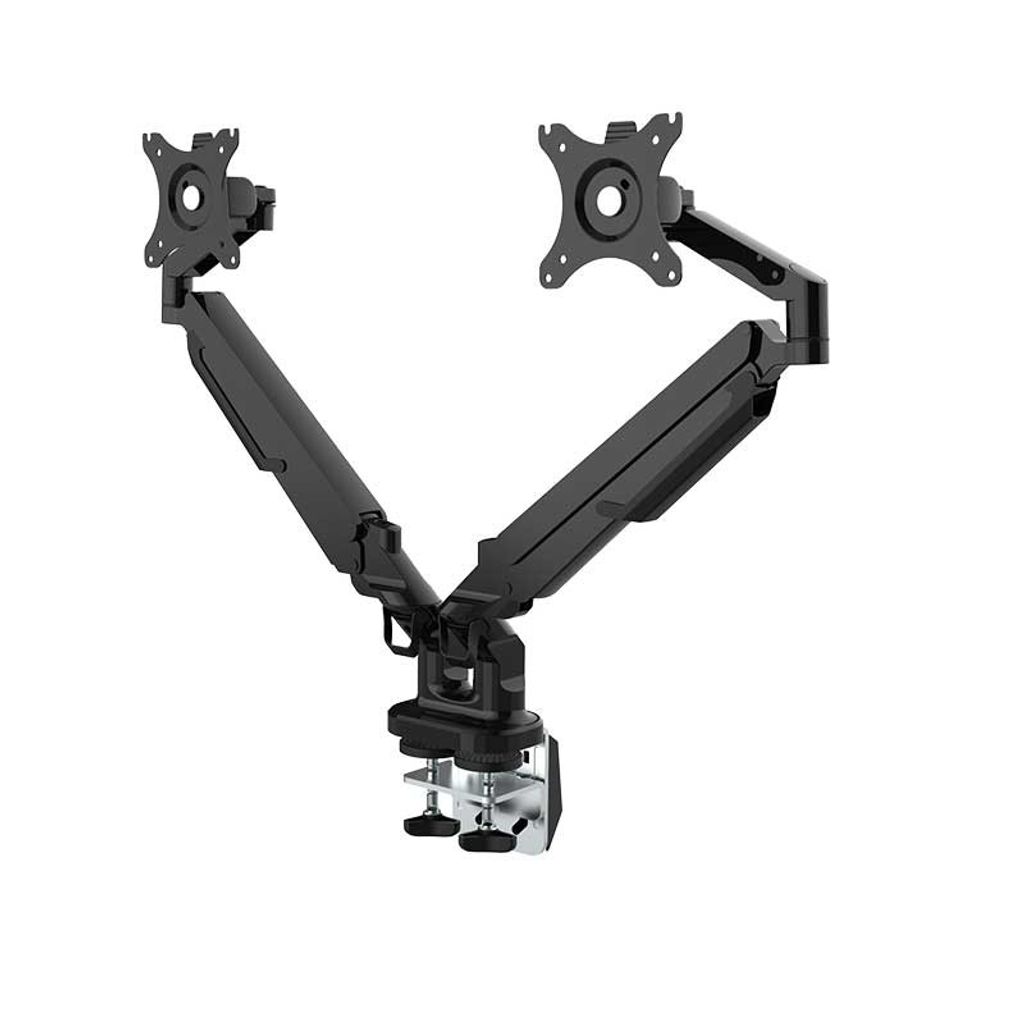 Stativet har 2 sammankopplade armar för att kunna bära 2 displayskärmar med en rek. max. belastning på 2-9 kg, vilket oftast är dom vanligaste storlekarna i ett kontor. En någorlunda modern skärm som är 32? väger knappt 4kg. Armarna har ett gasfjädringssystem vilket gör att du enkelt kan ställa in skärmen i önskat läge för bästa möjliga vinkel. Med en huvudrotation på 360° och god lutning både upp och ner ger skärmhållaren EASY användaren en stor frihet.Specifikationer