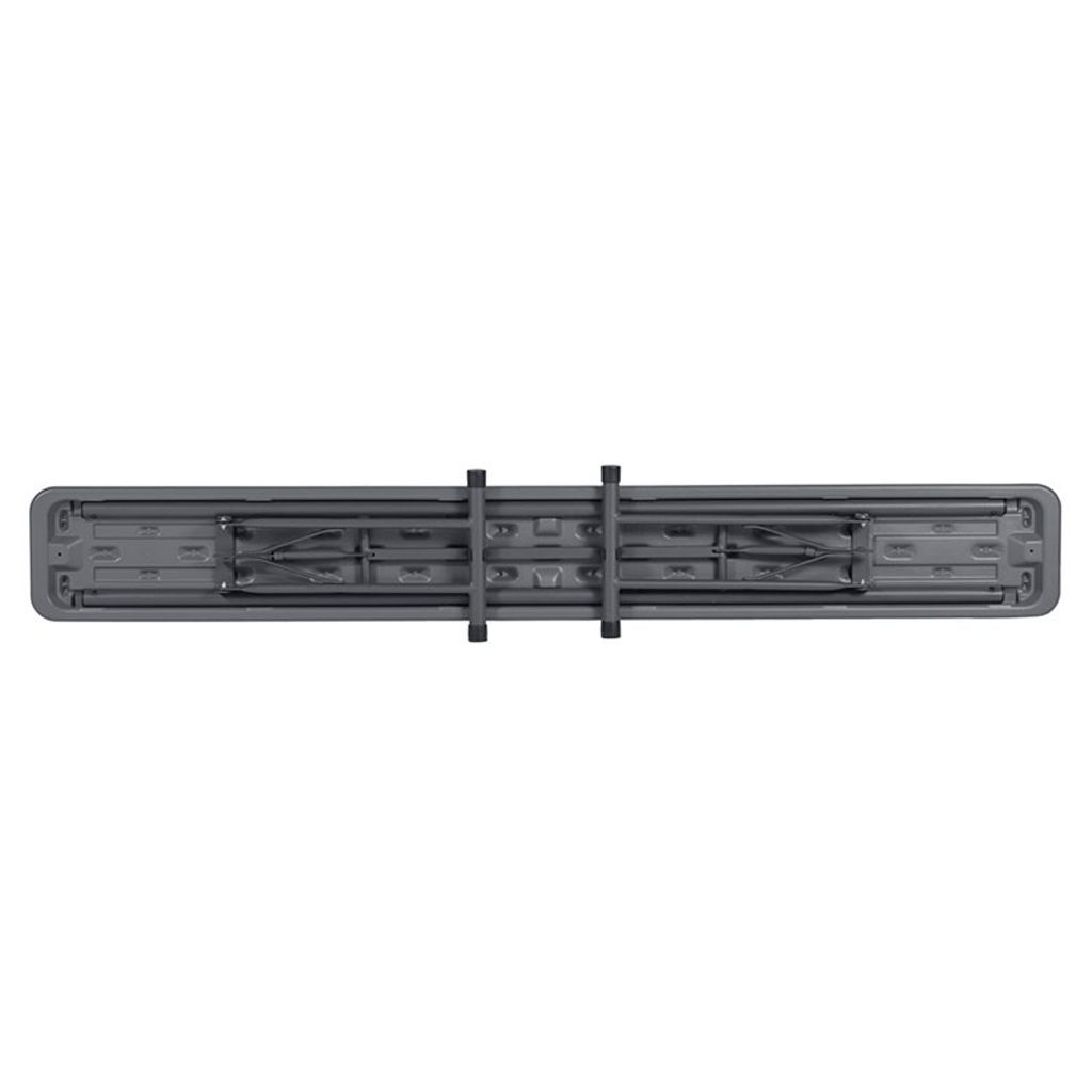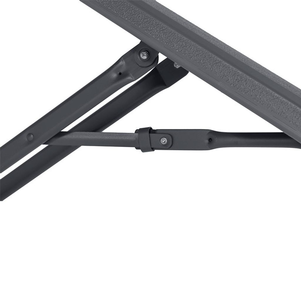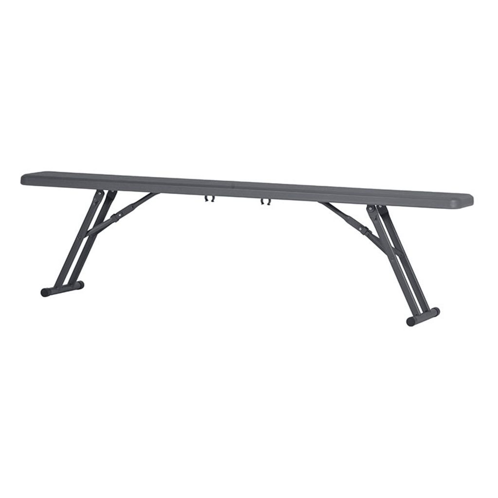 Bänken har mörkgrå färg (Shark Grey) på både stativ och skiva.