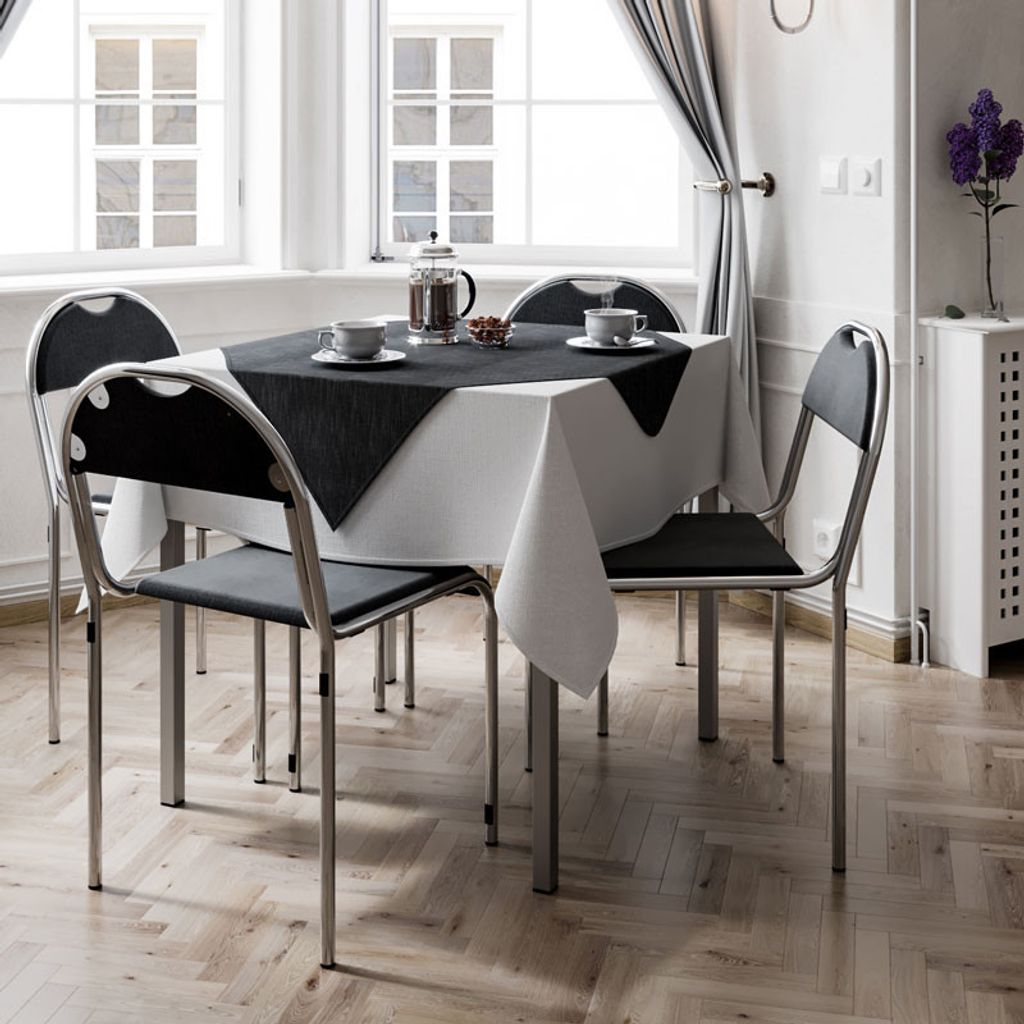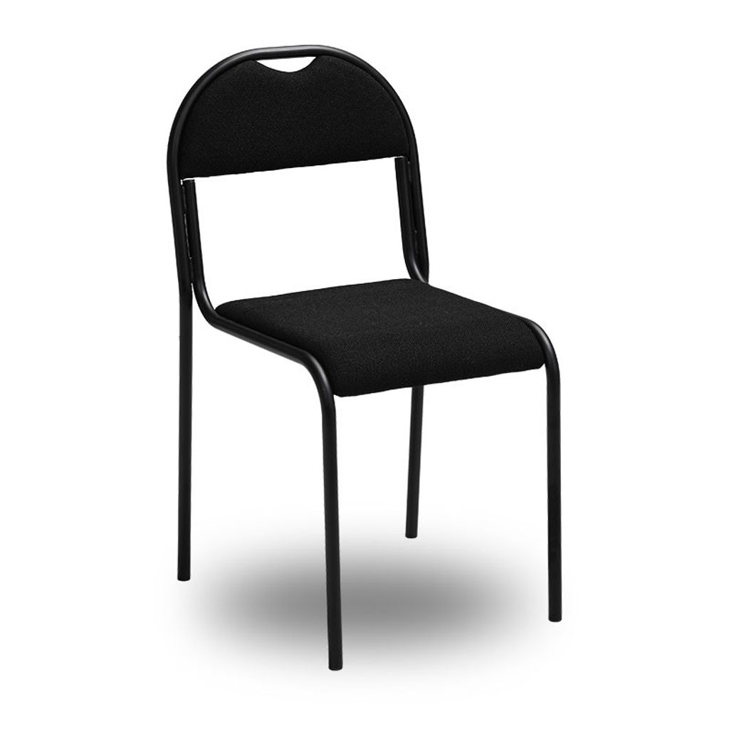 Sits och rygg är klädd i svart tyg och stativet är en pulverlackerad rörställning. Vi har matchande stolsöverdrag till RX002 vilket är uppskattat vid event/fest.