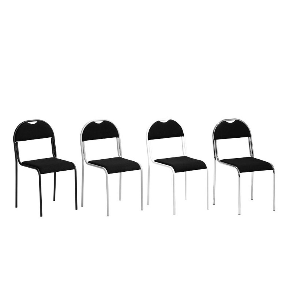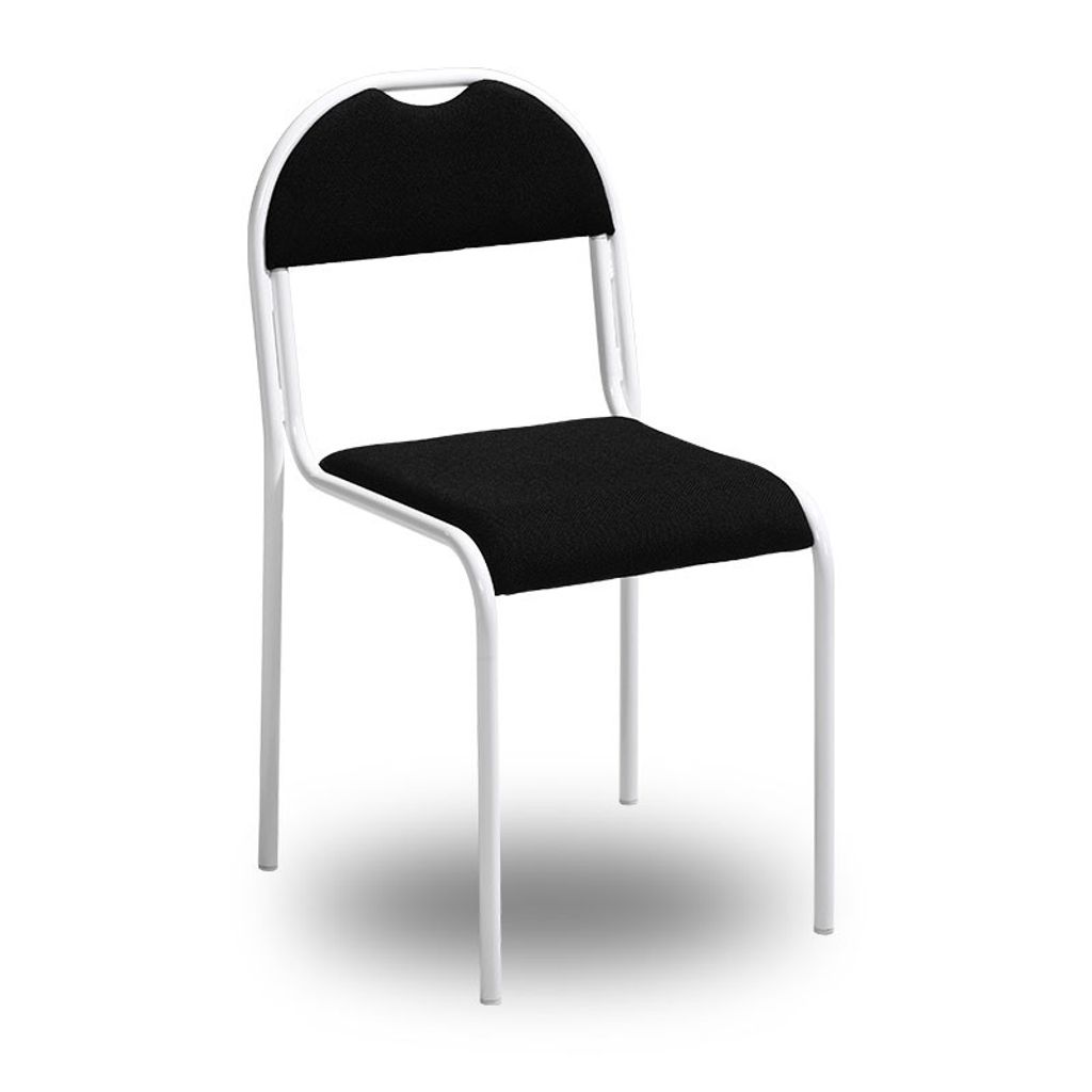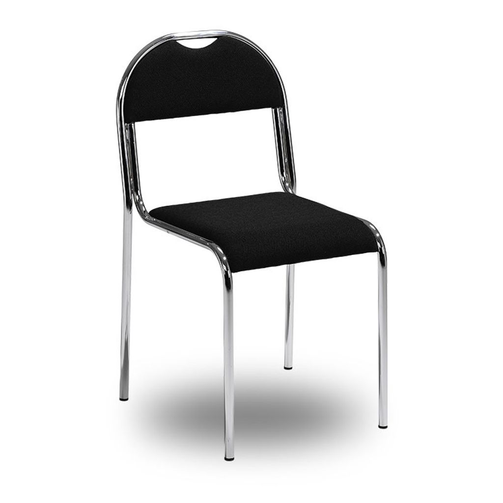 Stoppad rygg och sits med tyg av polyester, kromad eller pulverlackerad rörställning.