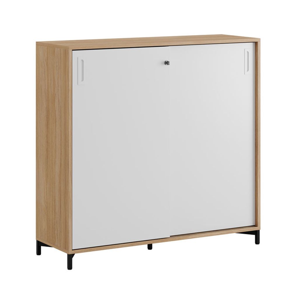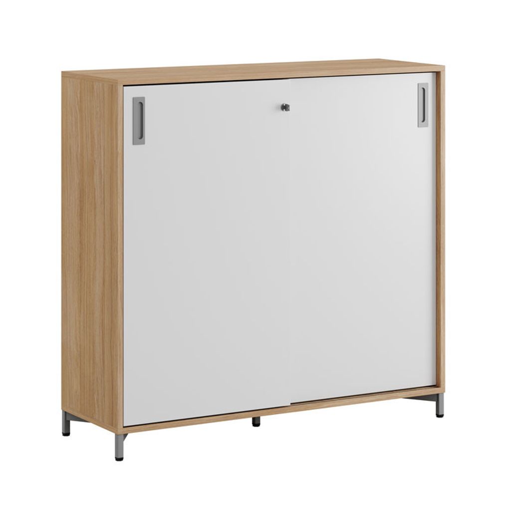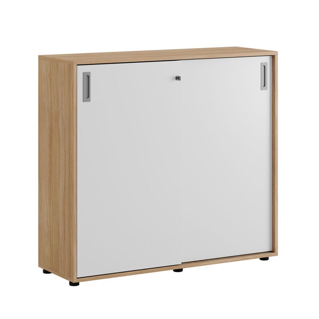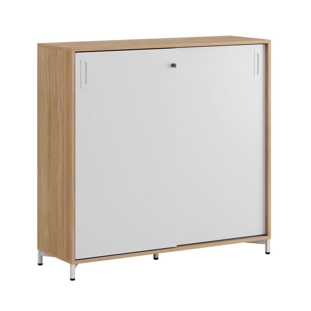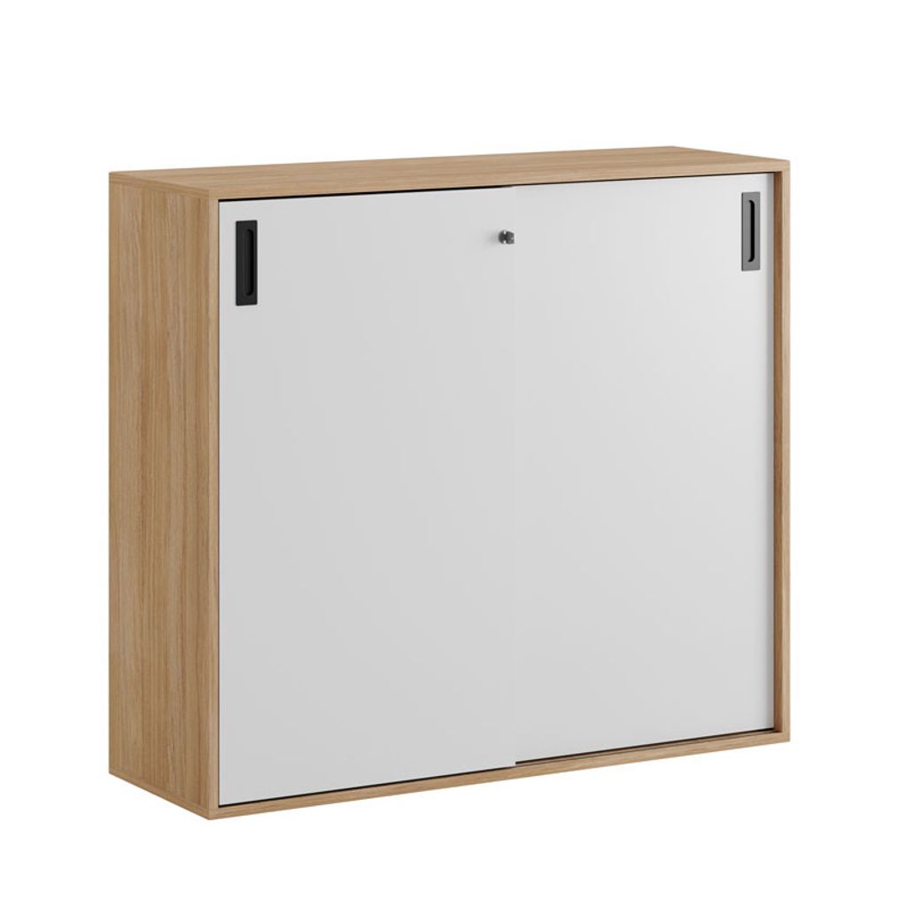 Skåp med skjutdörrar är ett naturligt element i kontoret och i det öppna kontorslandskapet. Göm undan laddare och post-it lappar, dokument samt privata saker så att skrivbordet håller sig rent och fint. Det finns smarta tillval för dokumenthantering så att strukturen blir ännu bättre.