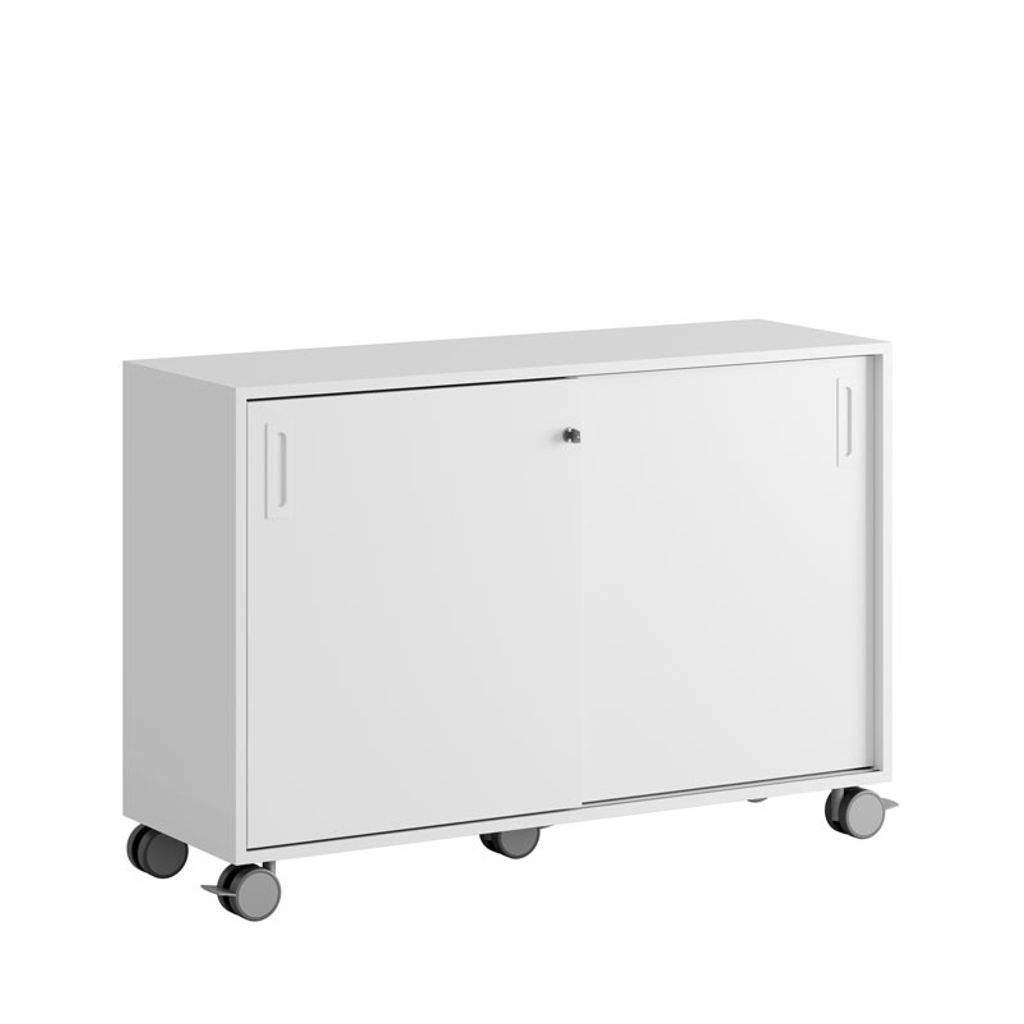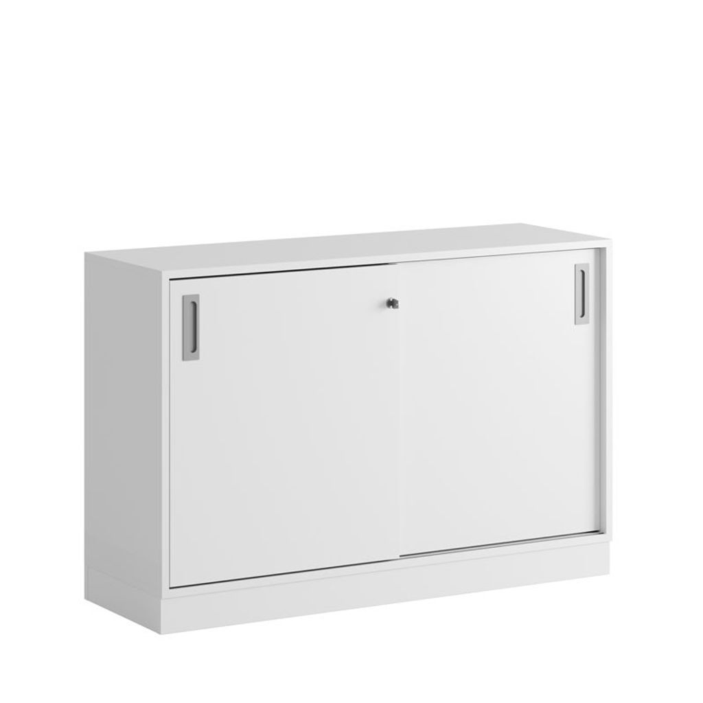 Vitt skåp med skjutdörrar i Modify serien är framtagna för kunder som vill ha många valmöjligheter. Skåpet rymmer 2 pärmar på höjden. Lås med 2 nycklar ingår.