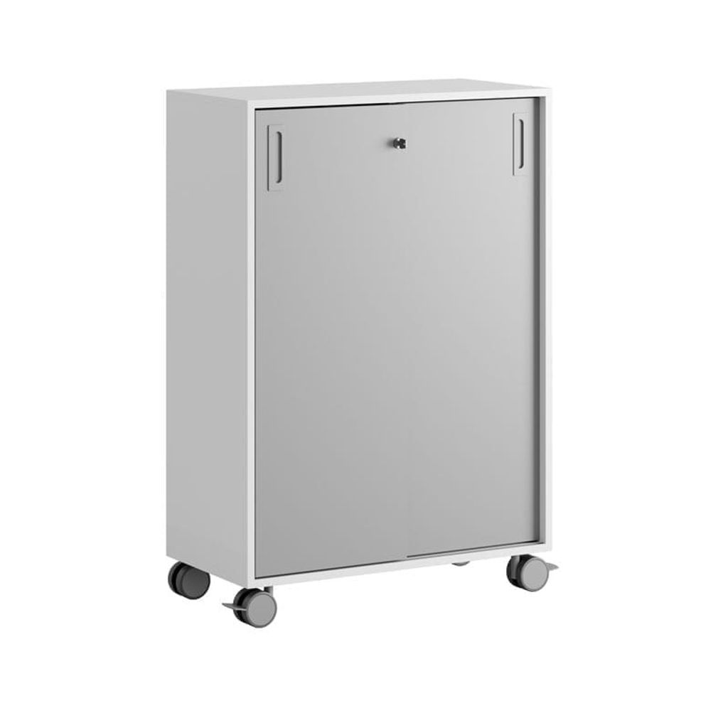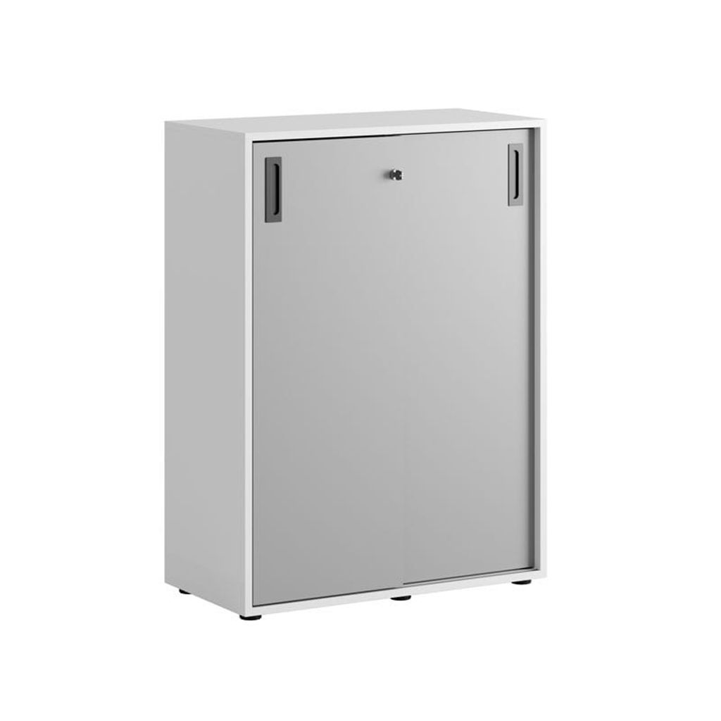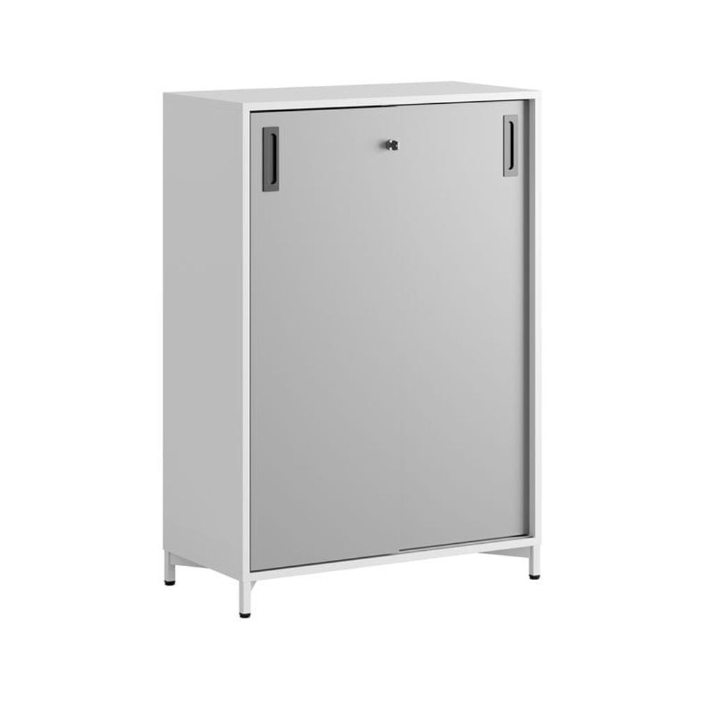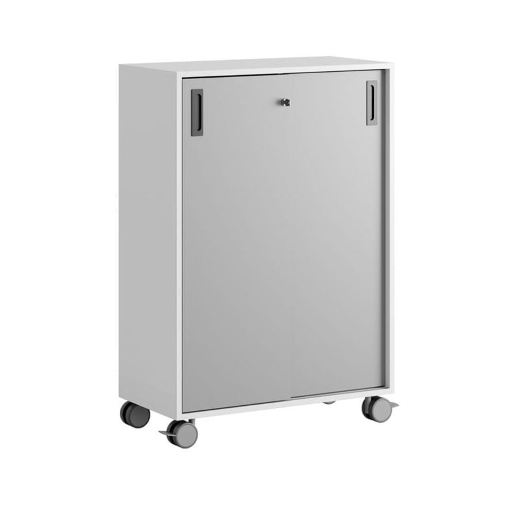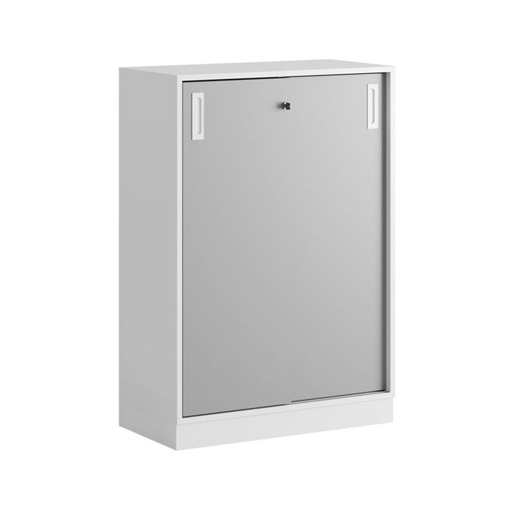 Vitt skåp med grå skjutdörrar i Modify serien är framtagna för kunder som vill ha många valmöjligheter. Skåpet rymmer 3 pärmar på höjden. Lås med 2 nycklar ingår.