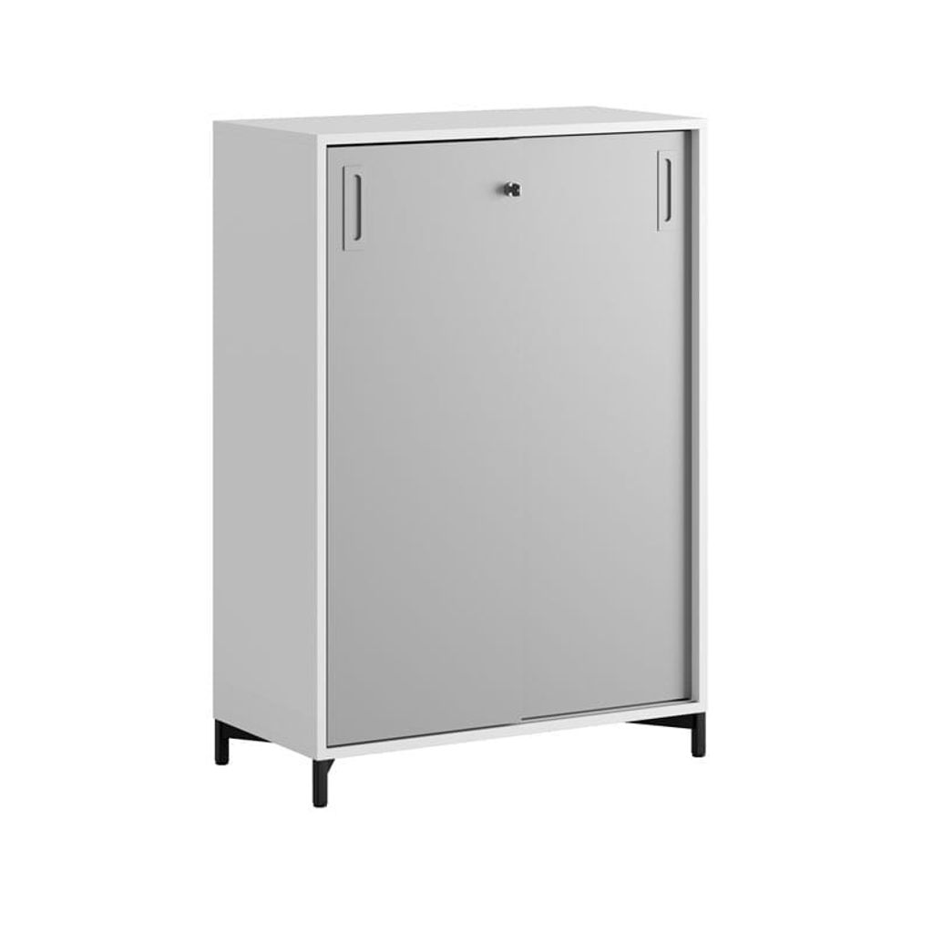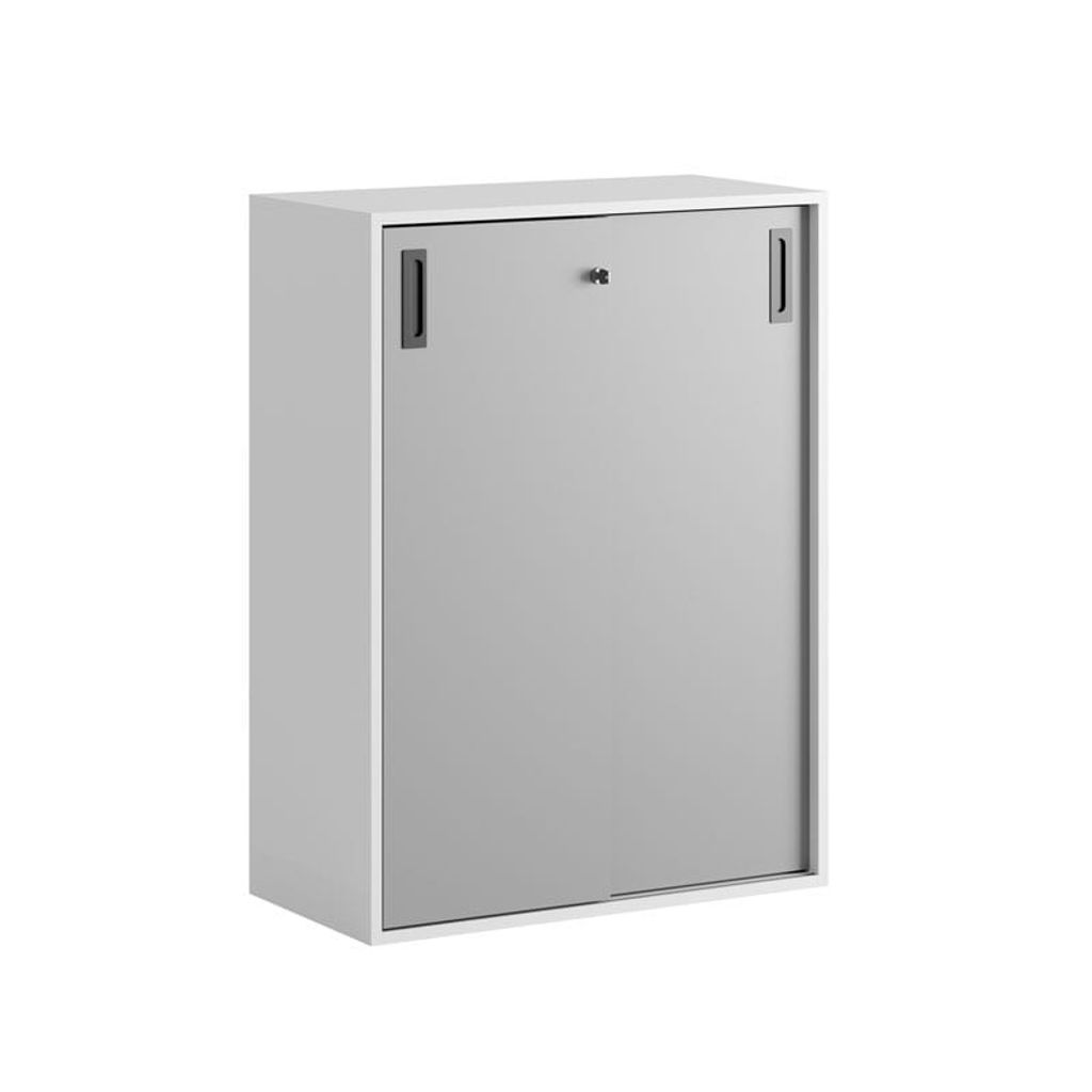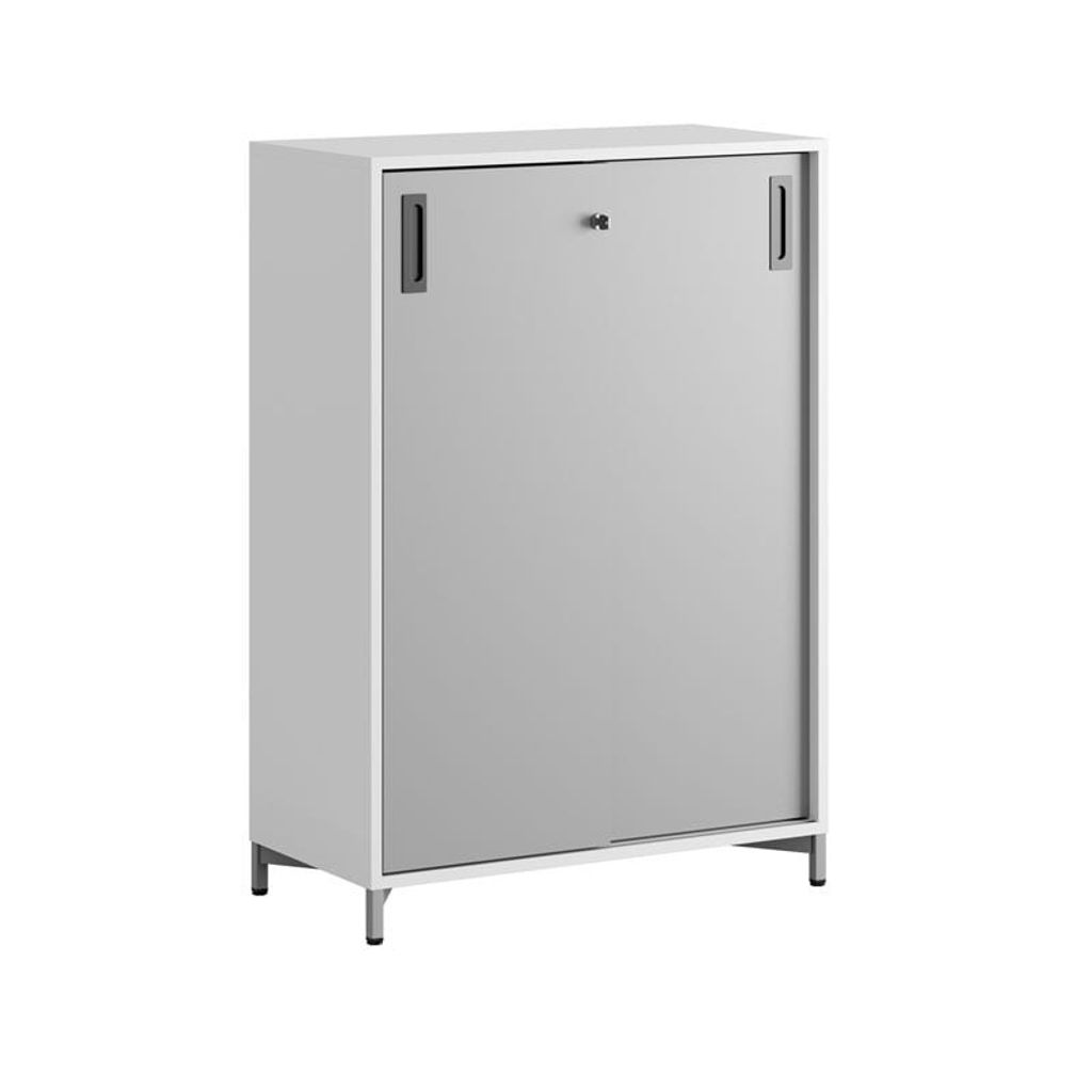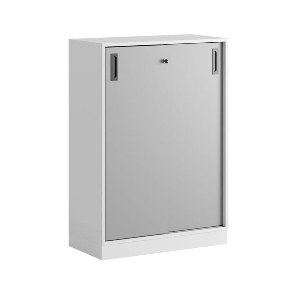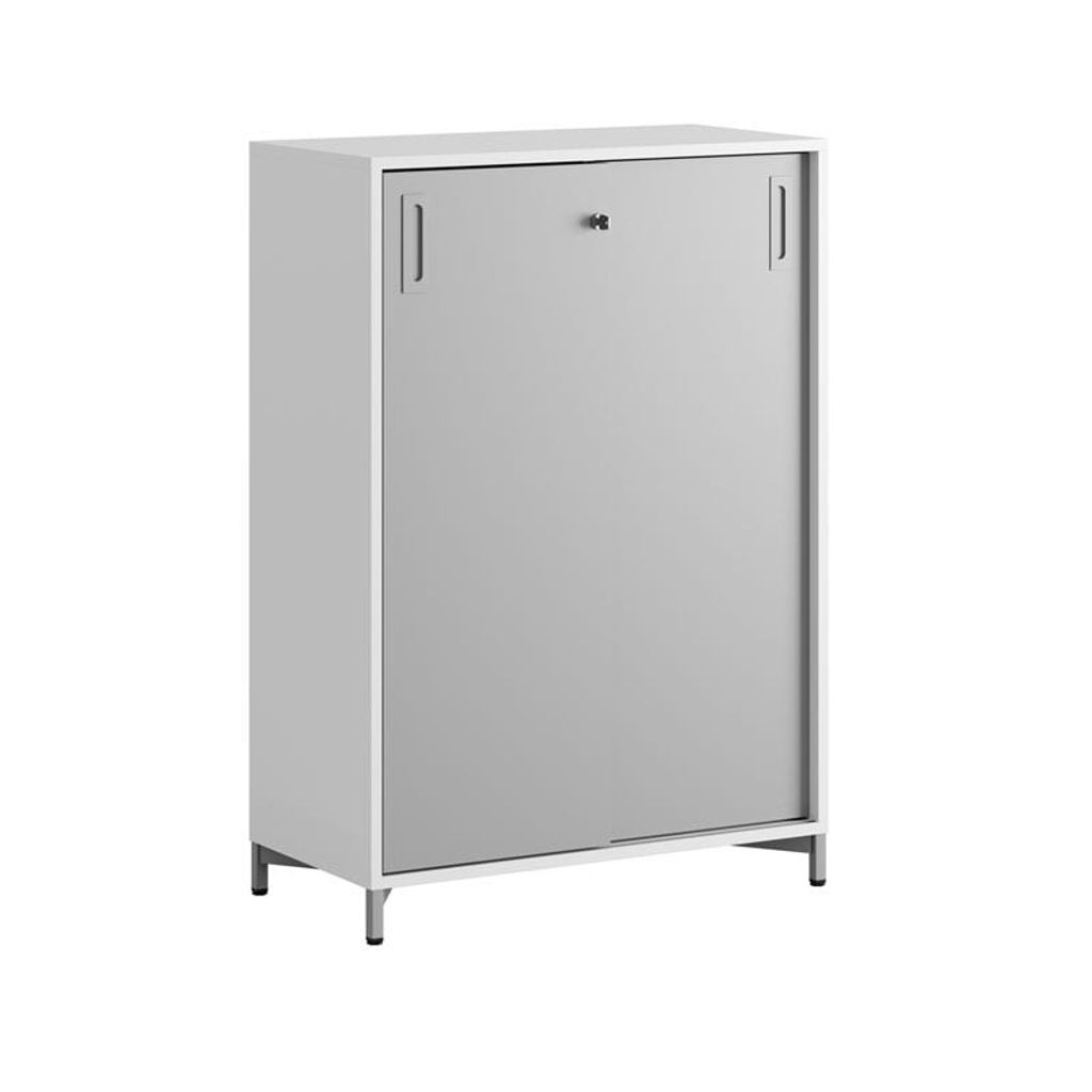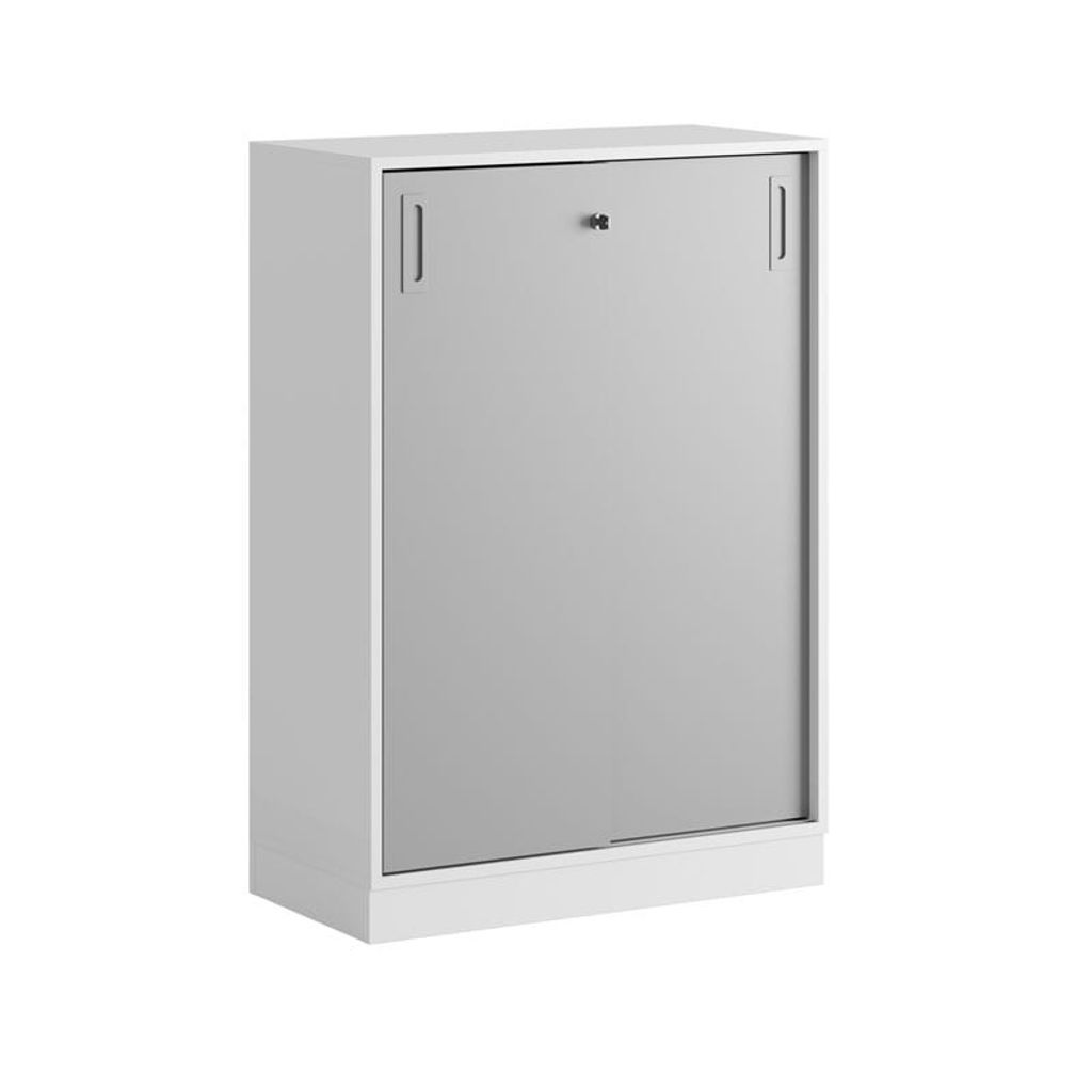 Vitt skåp med grå skjutdörrar i Modify serien är framtagna för kunder som vill ha många valmöjligheter. Skåpet rymmer 3 pärmar på höjden. Lås med 2 nycklar ingår.