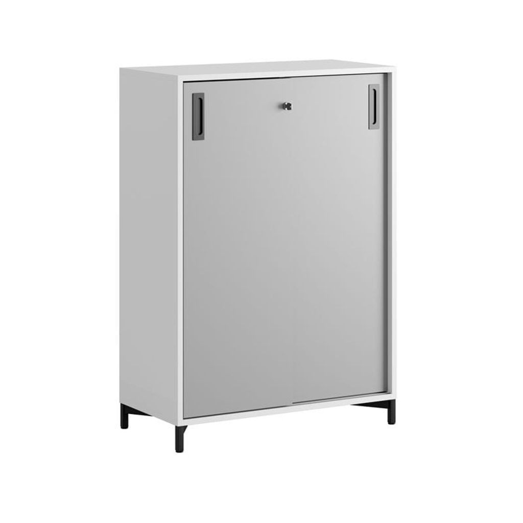 Vitt skåp med grå skjutdörrar 80x40x107,5 cm - Modify