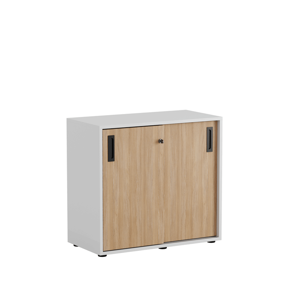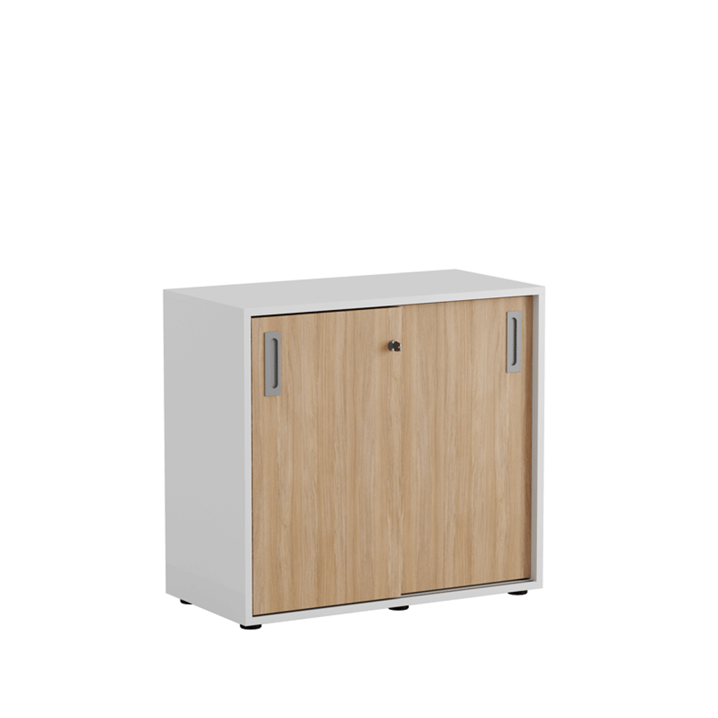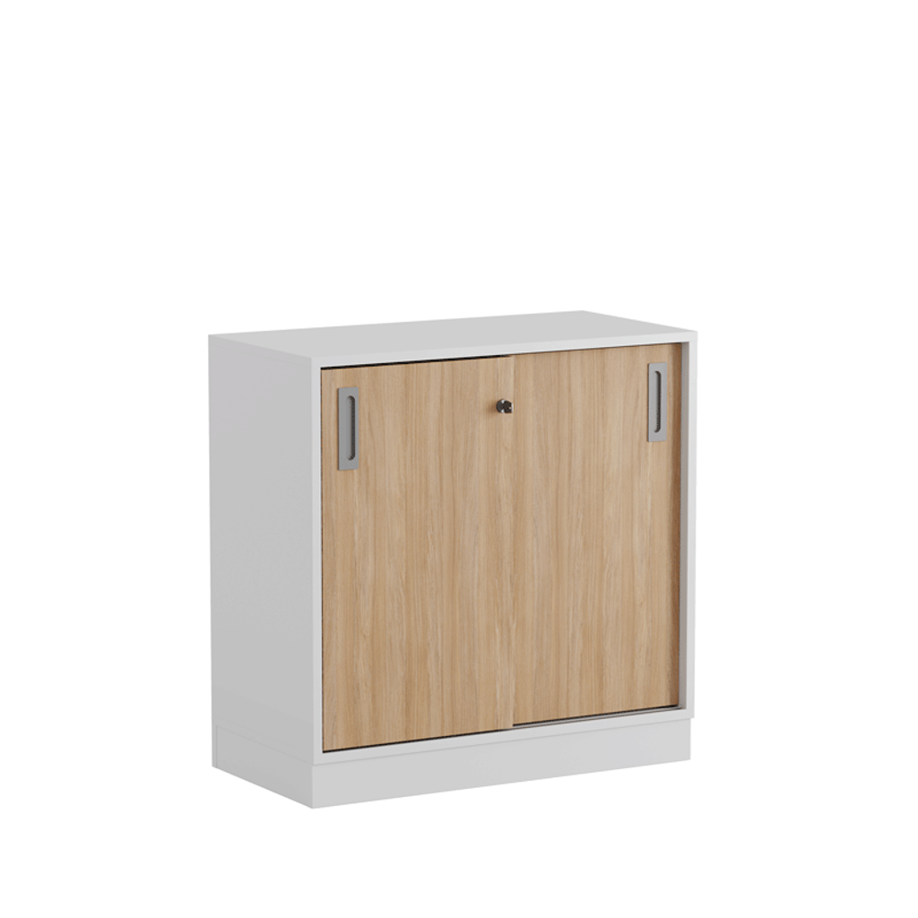 Vitt skåp med skjutdörrar i ek 80x40x72 cm i Modify serien är framtagna för kunder som vill ha många valmöjligheter. Skåpet rymmer 2 pärmar på höjden. Lås med 2 nycklar ingår.