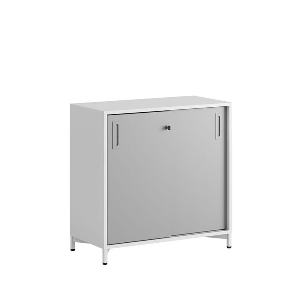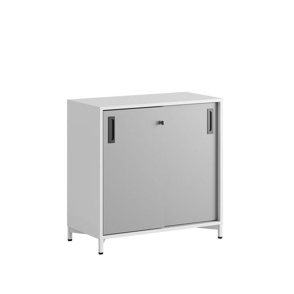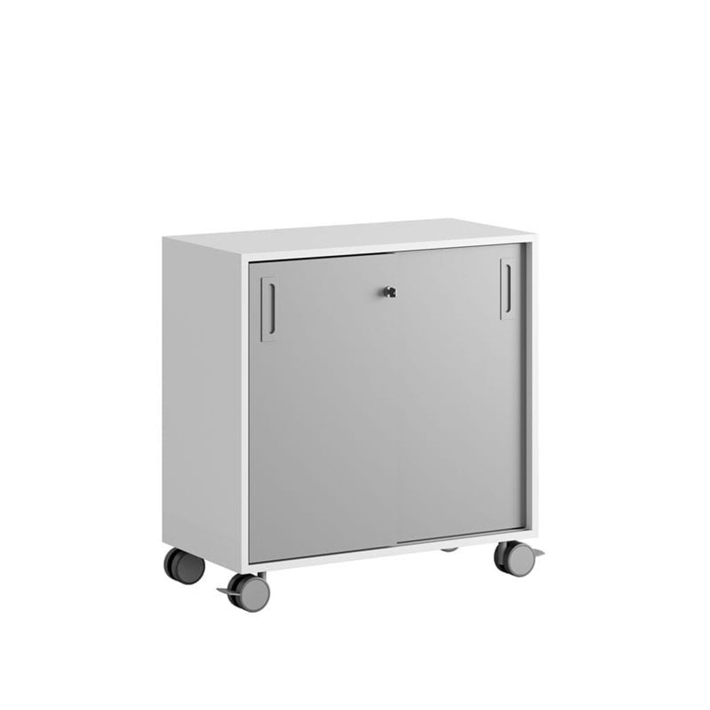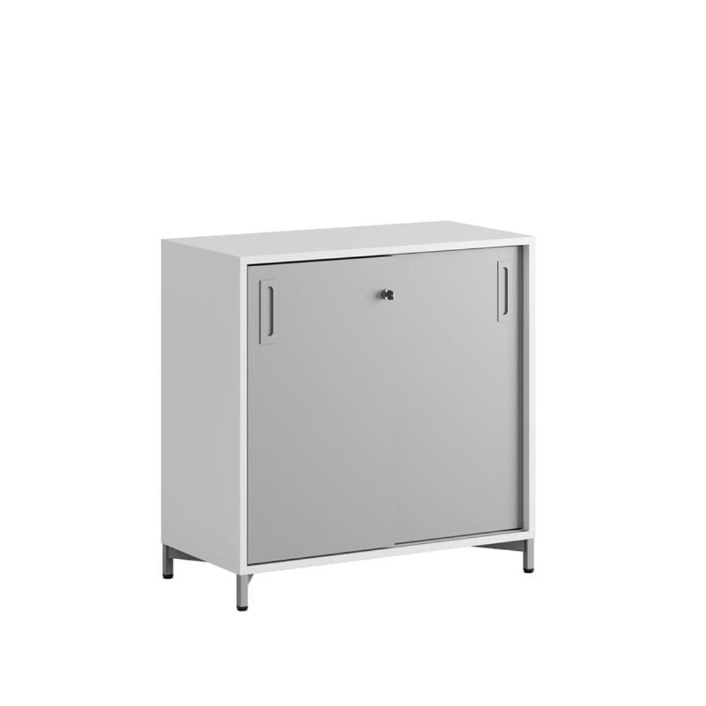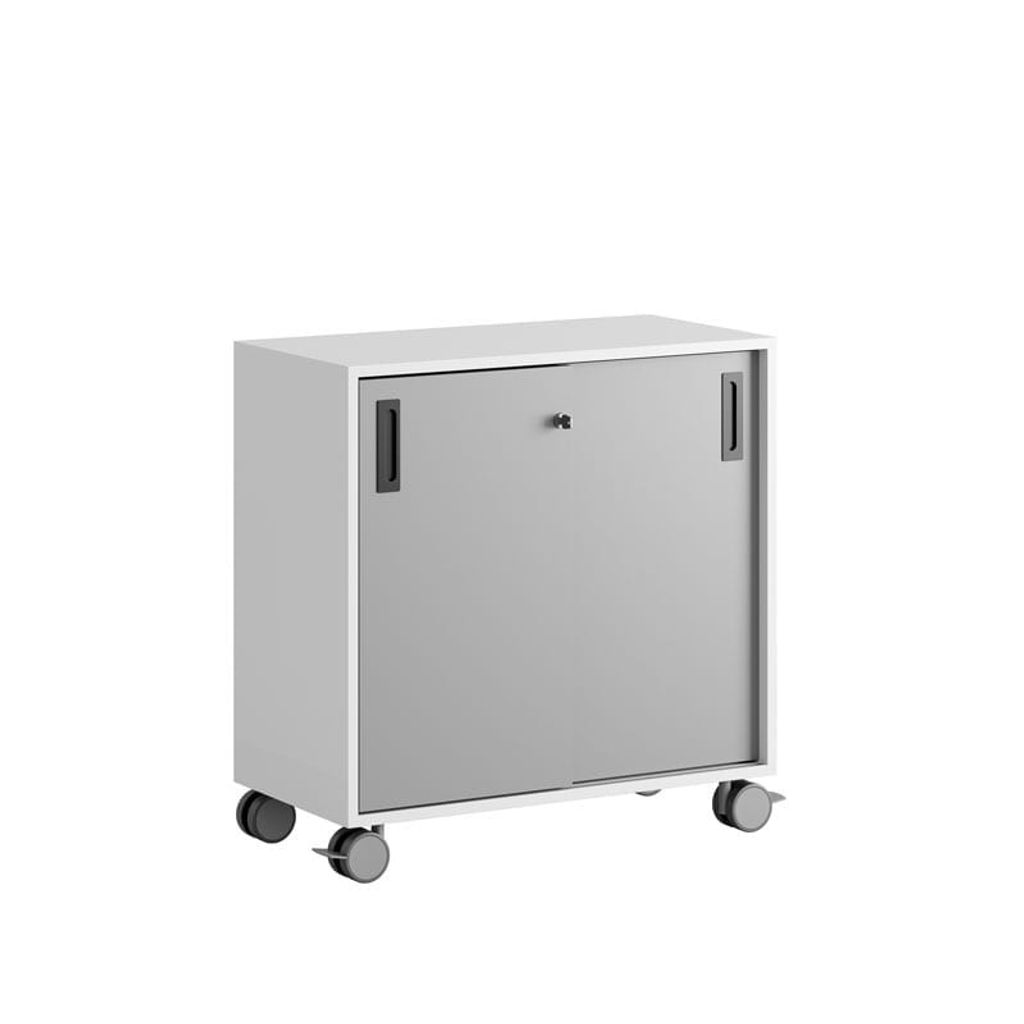 Vitt skåp med grå skjutdörrar 80x40x72 cm i Modify serien är framtagna för kunder som vill ha många valmöjligheter. Skåpet rymmer 2 pärmar på höjden. Lås med 2 nycklar ingår.