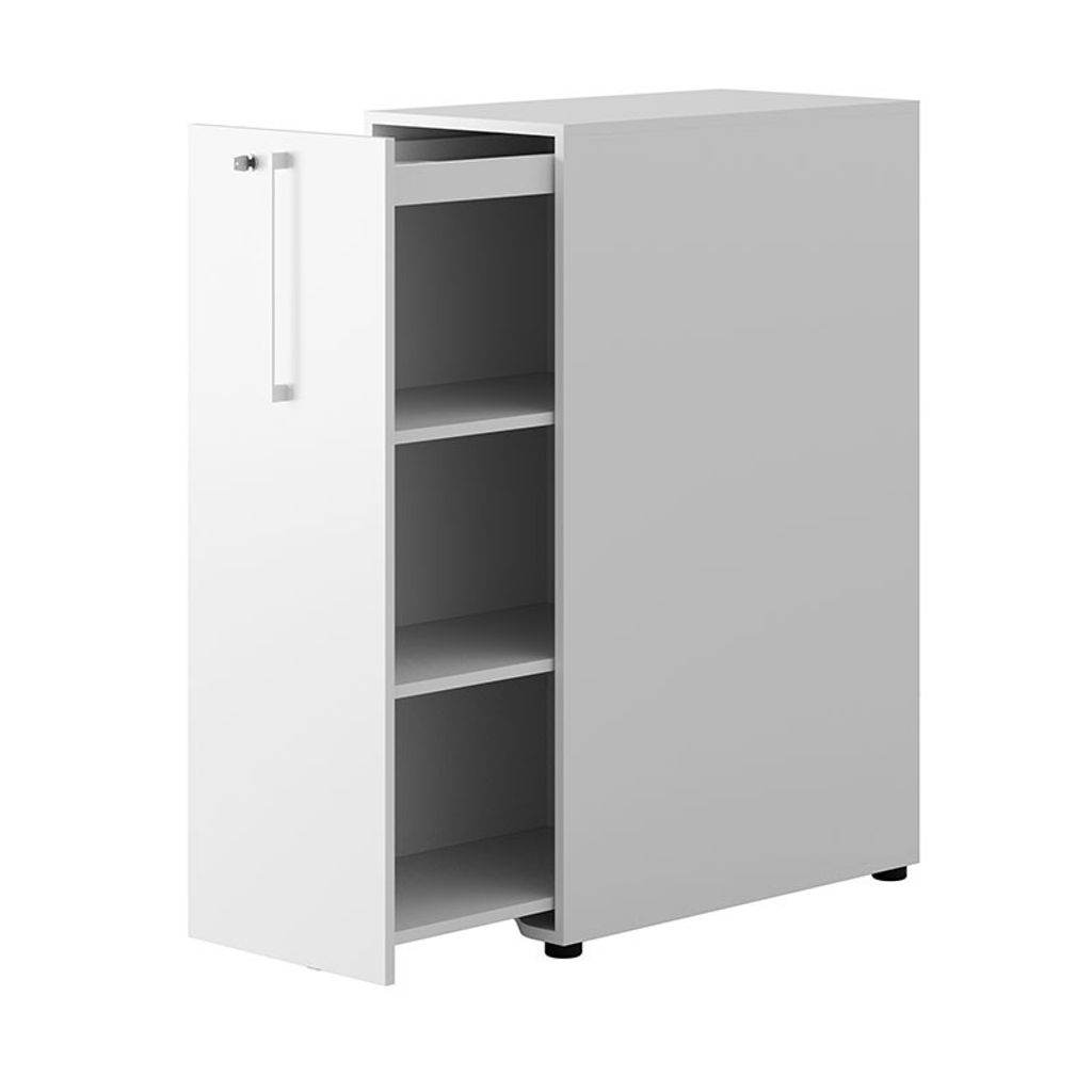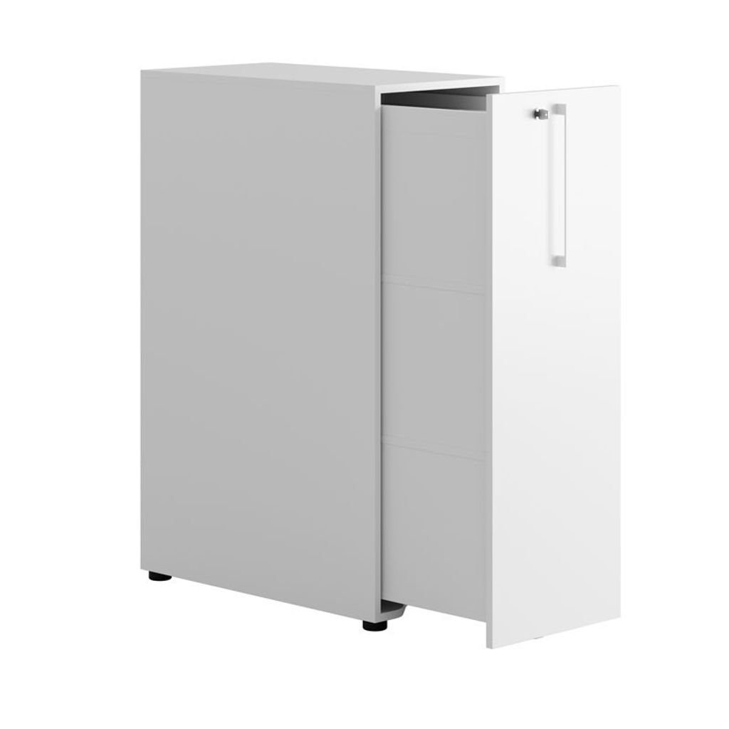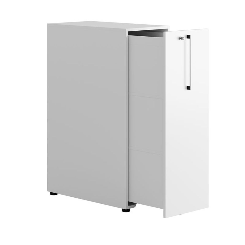 Vitt towerskåp (vänster) i Modify serien är en Premium produkt som är framtagen för det moderna kontoret. Lås med 2 nycklar ingår till skåpet.