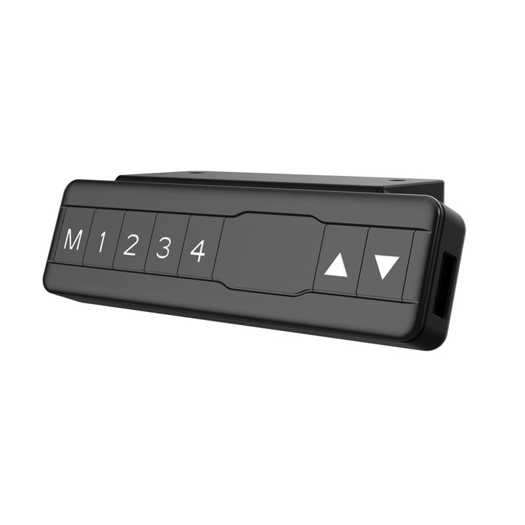 Den medföljande knappsatsen monteras enkelt på bordsskivan och pluggas sedan in i motorn. Genom att välja en lämplig arbetshöjd sparar du sedan positionen i minnet. Du kan lagra upp till 4 olika positioner vilket förenklar ditt arbete mellan sittande och stående. I knappsatsen finns även USB-uttag för möjlighet att ladda mobil, dator mm.