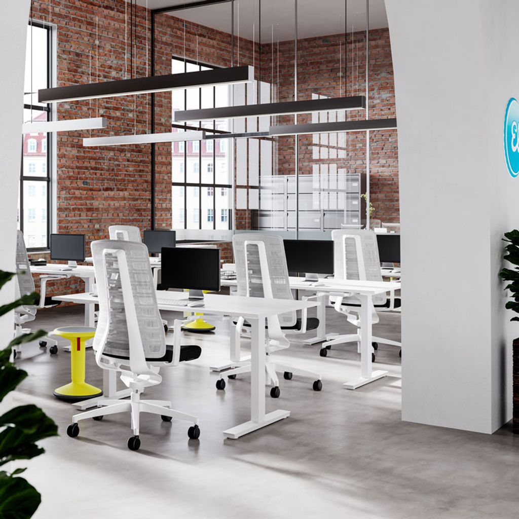 Stativet har en stilren design med raka linjer vilket gör att skrivbordet passar in i alla typer av kontorslokaler. Benen på stativet är tillverkade med 3-delade rektangulära rör. Stativet har sedan pulverlackerats med högsta nogrannhet. Lyftkapaciteten ligger på 100 kg vilket gör att användaren utan problem får plats med flera skärmar, dockstation, dokument mm. Slaglängden på ett stativ anger det höj & sänkbara avståndet. På vårt tvåmotoriga elstativ är slaglängden 650 mm.
