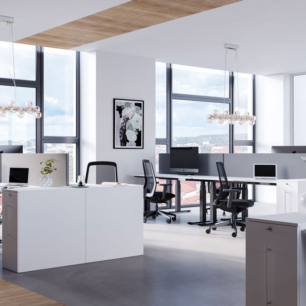 Det motordrivna Up & Down stativet finns i dagsläget i 2 olika standardfärger: svart och silvergrå. Vi har olika modeller på bordsskivor i Up & Down serien. Rektangulära 19 mm laminatskivor i bok, björk, ek, vitt, grått samt 22 mm laminatskivor i vitt med maguttag. Vi kan även specialtillverka bordsskivor i olika storlekar, kontakta ELJ Furniture för mer information.