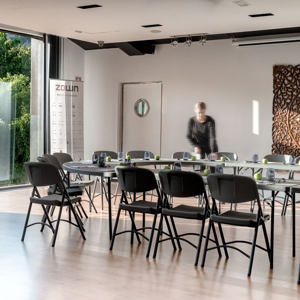 XL borden från new classic är en vidareutveckling av fällbara plastbord från Zown, som vi tidigare kallat Event rektangulära. Alla bord i new classic collection har fått den nya färgen Shark Grey. XL borden har fått ett nytt benstativ för att användaren skall sitta bekvämt även på kortsidan av bordet. Event borden har både UV-skydd och är fuktbeständiga och finns i olika storlekar. Bordsskivan är producerad i högdensitetspolyeten och bordsstativet är en pulverlackerad stålkonstruktion. Borden har inbyggda kopplingsbeslag och kopplas enkelt ihop på både lång- och kortsida. Överdrag i stretchtyg finns i både svart och vitt.